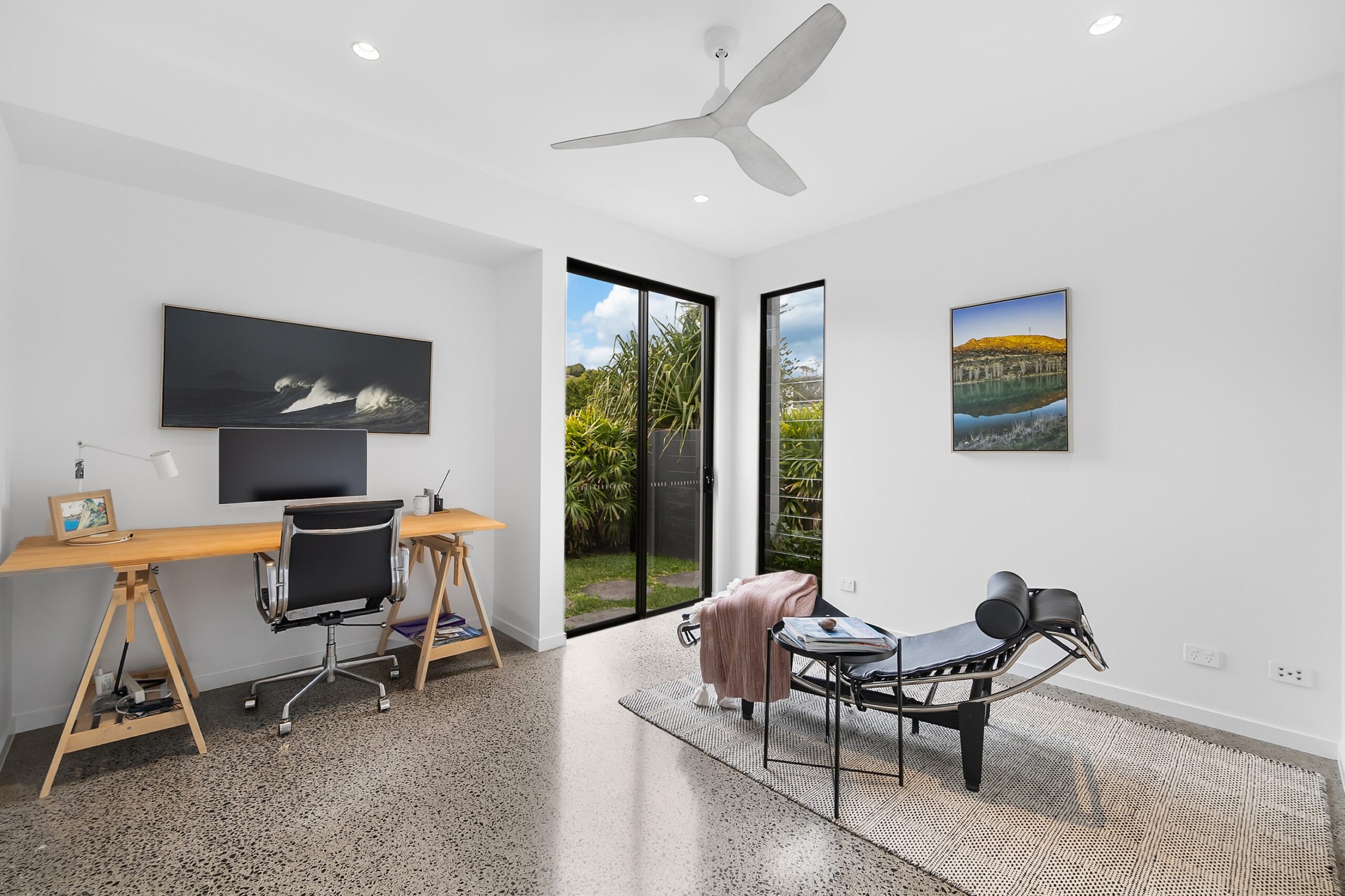 Upon entering through a private and secure entry, you are welcomed with high ceilings and beautifully polished concrete flooring, creating a spacious and airy ambiance, accentuated by natural light.