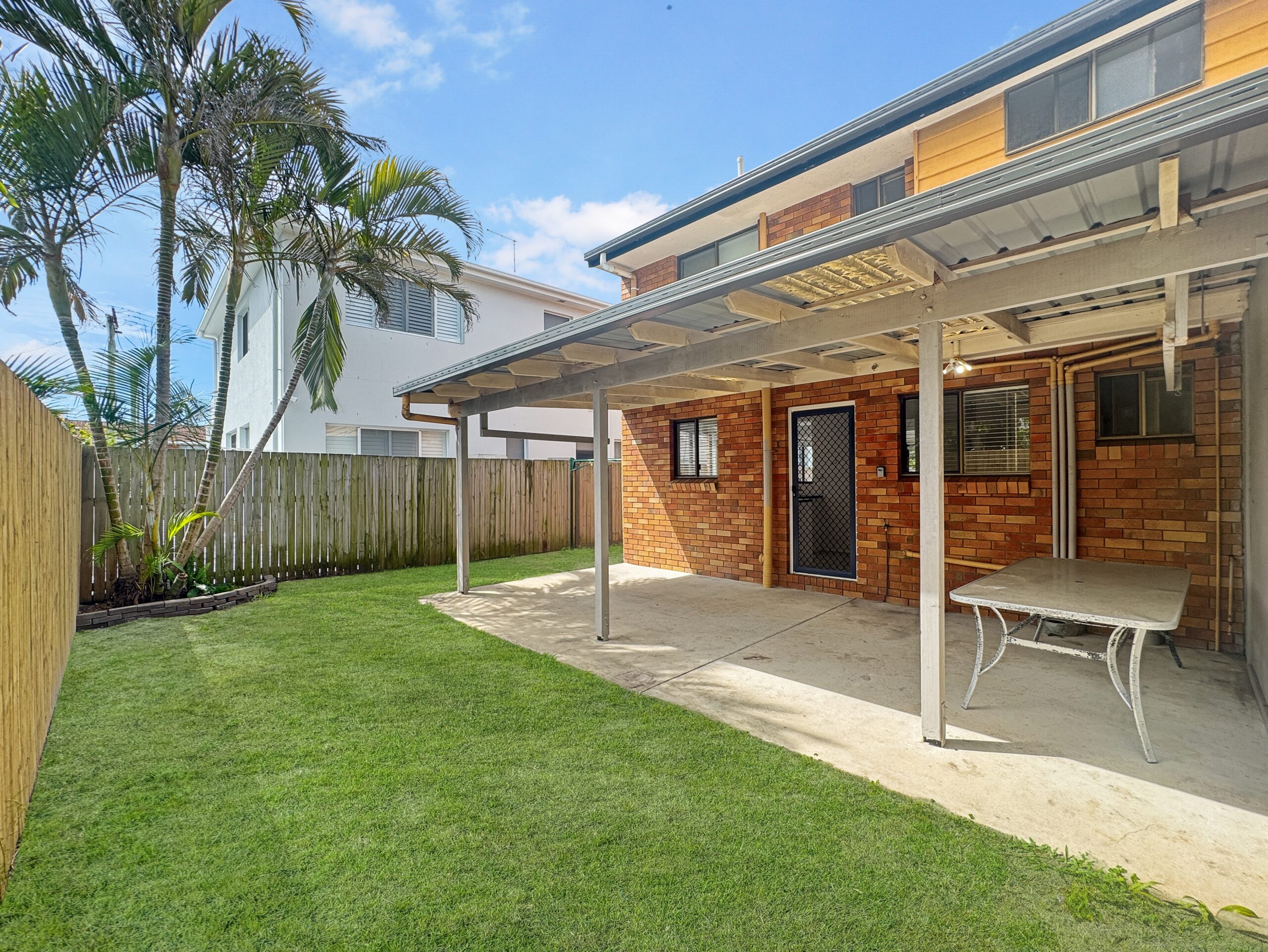 • Private rear patio under a pergola — perfect for morning coffee or alfresco dining