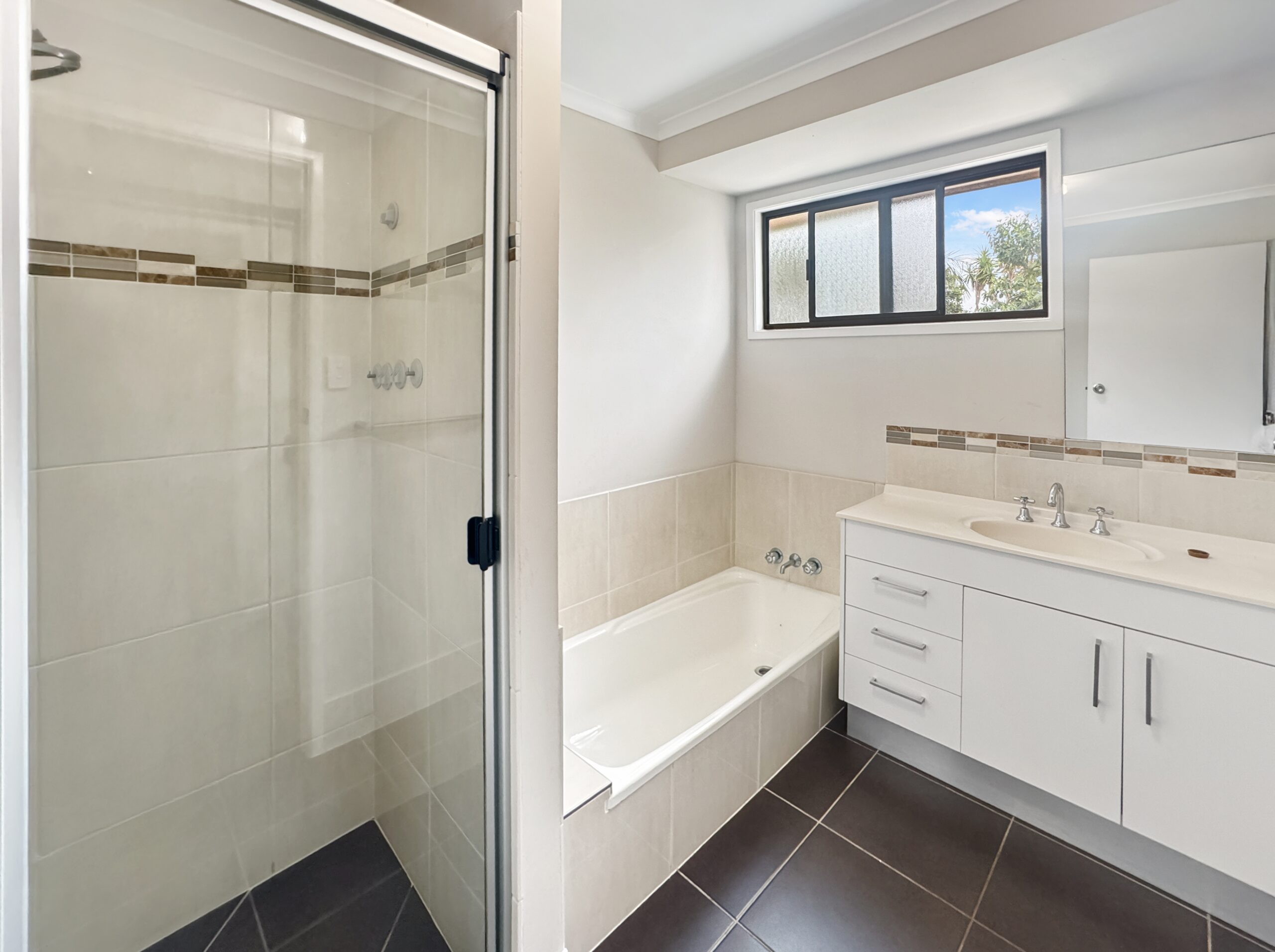 • Bright and tidy bathroom with separate bath and shower, plus a separate toilet