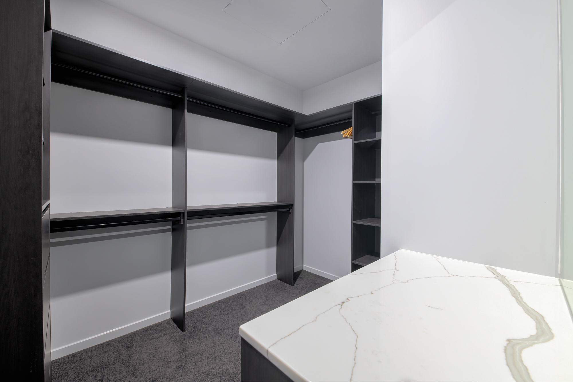 • Showpiece kitchen with sleek black stone benchtops, dual ovens, induction cooking, and an integrated dishwasher