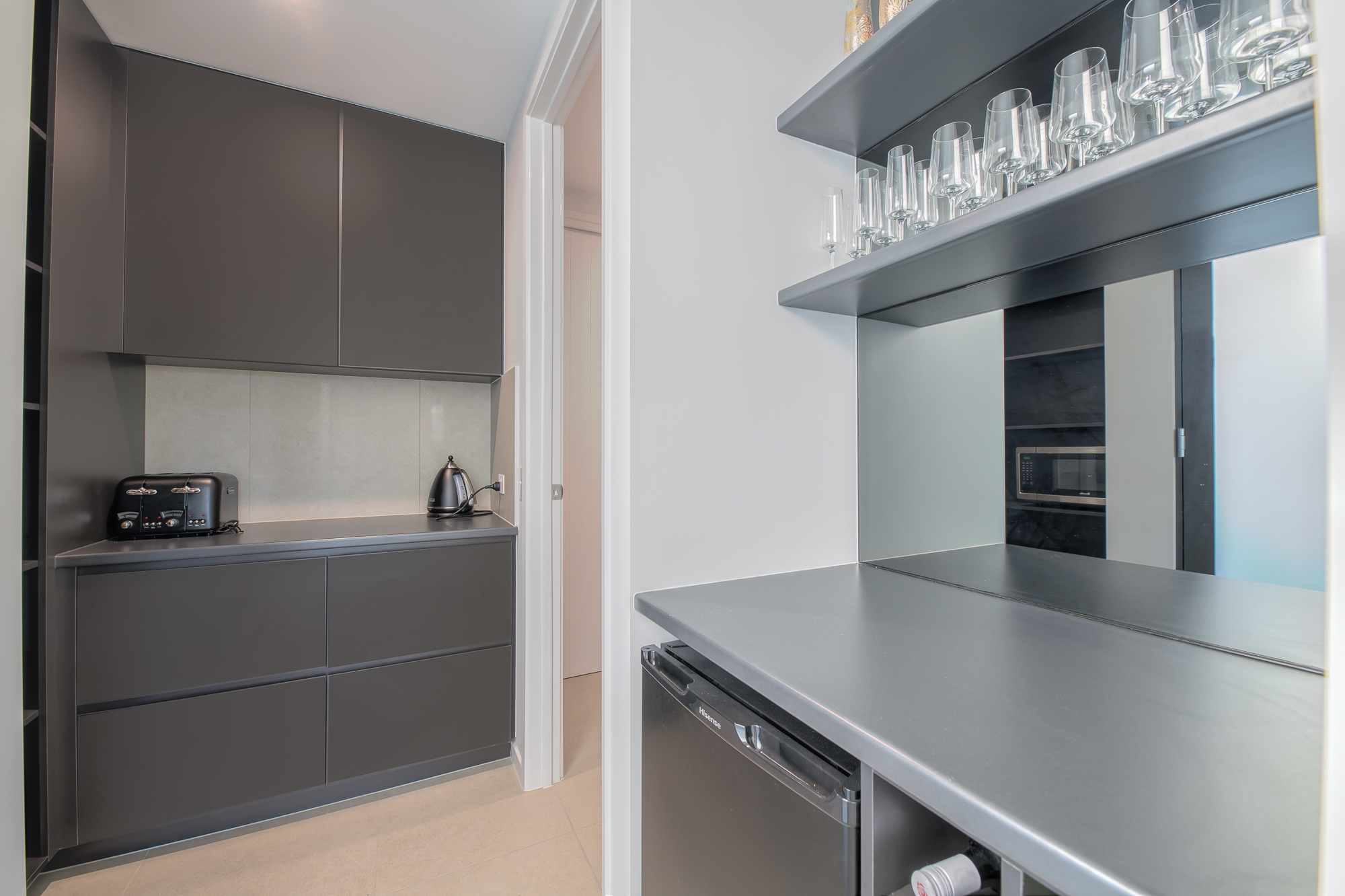 • Well-appointed butler’s pantry complete with additional storage and a mini bar