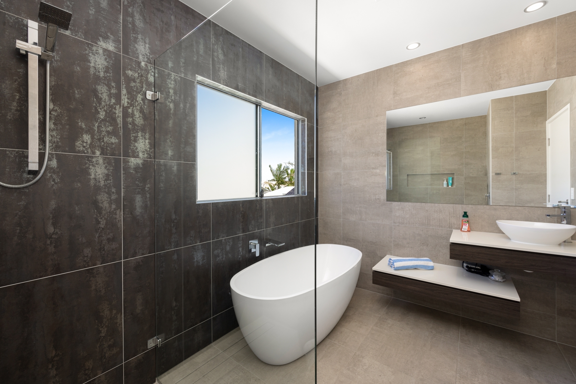 The timber and glass staircase will transport you upstairs, which consists of the primary bedroom, two other spacious air-conditioned bedrooms with built-ins, which are serviced by the state-of-the-art bathroom.