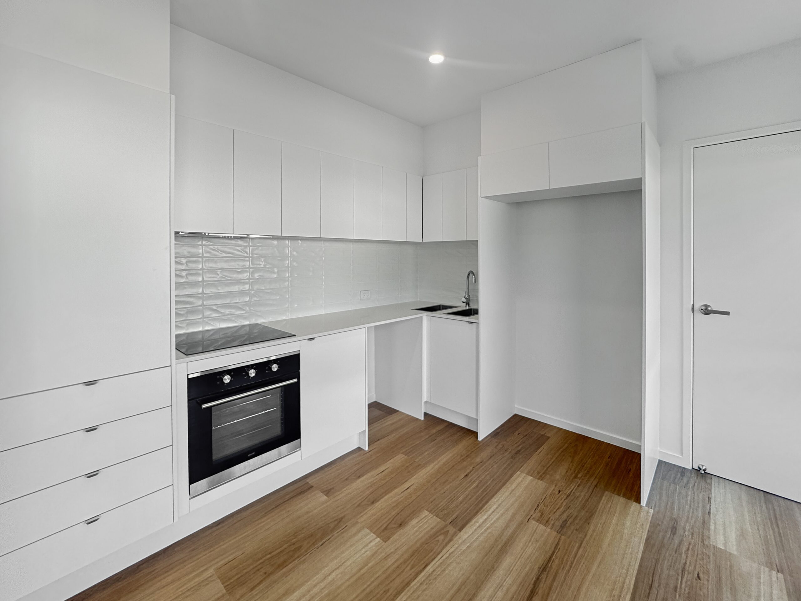 • Sleek kitchen with stone benchtops, tiled splashback, and ceramic cooktop and electric oven