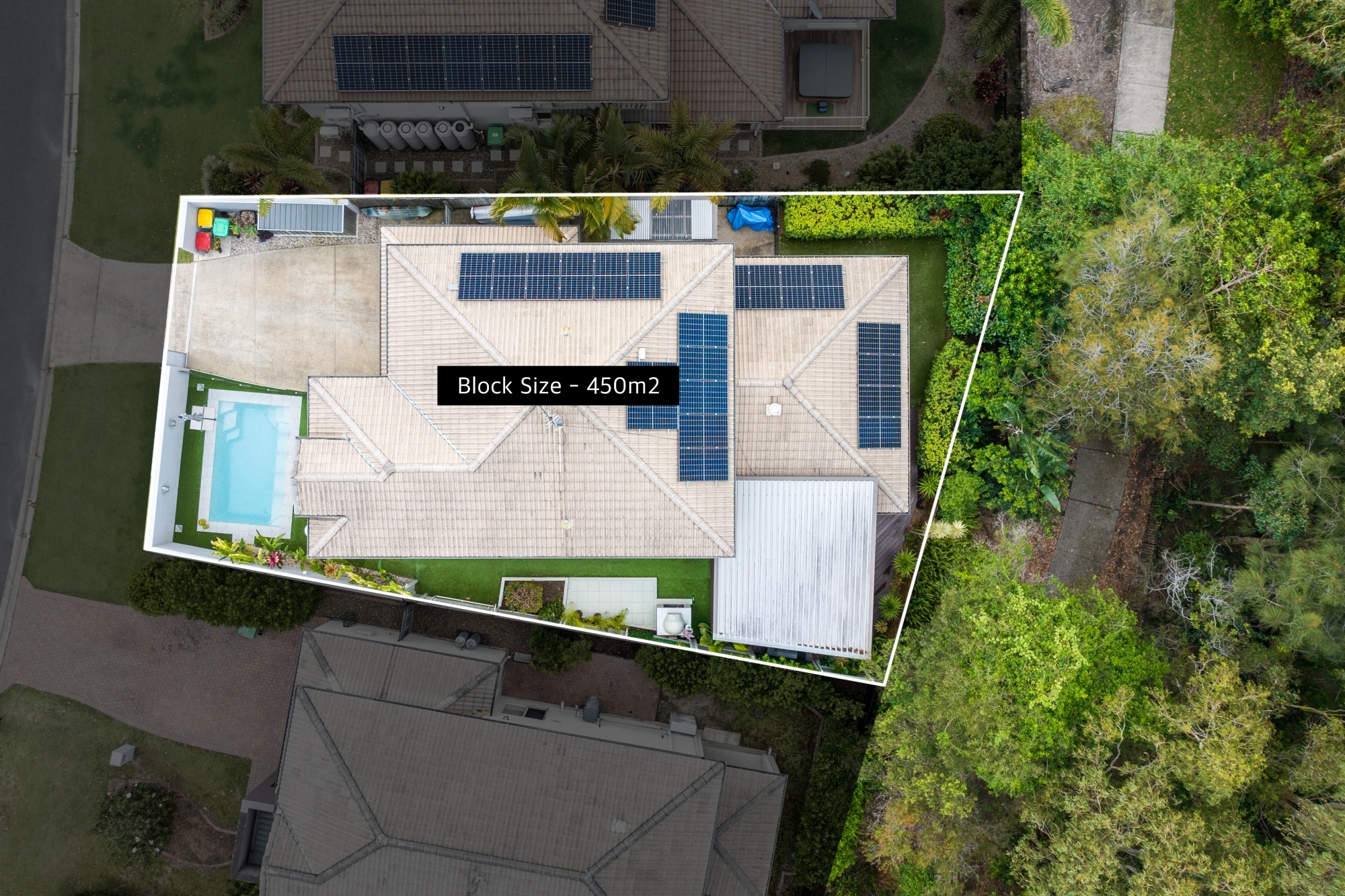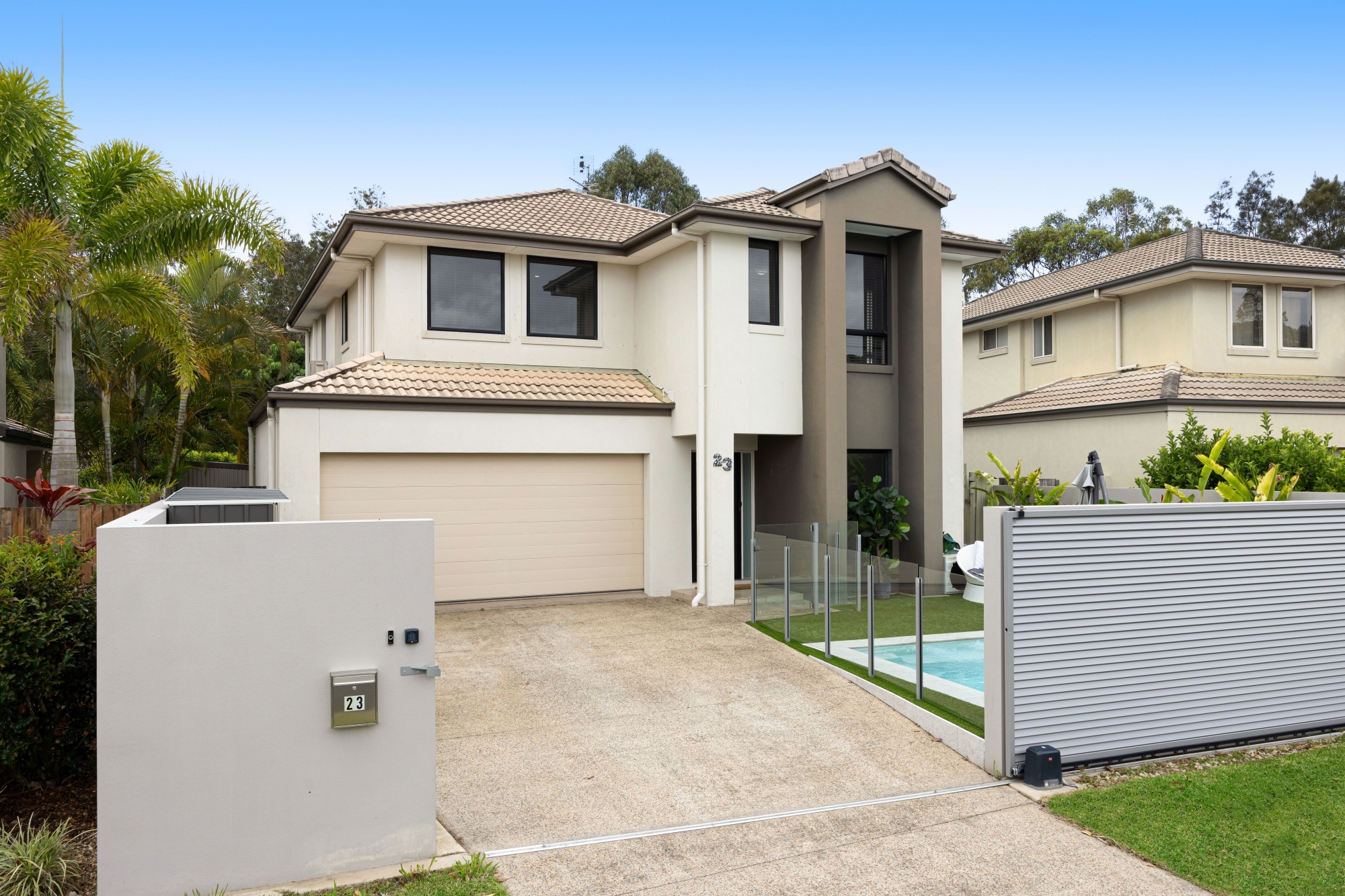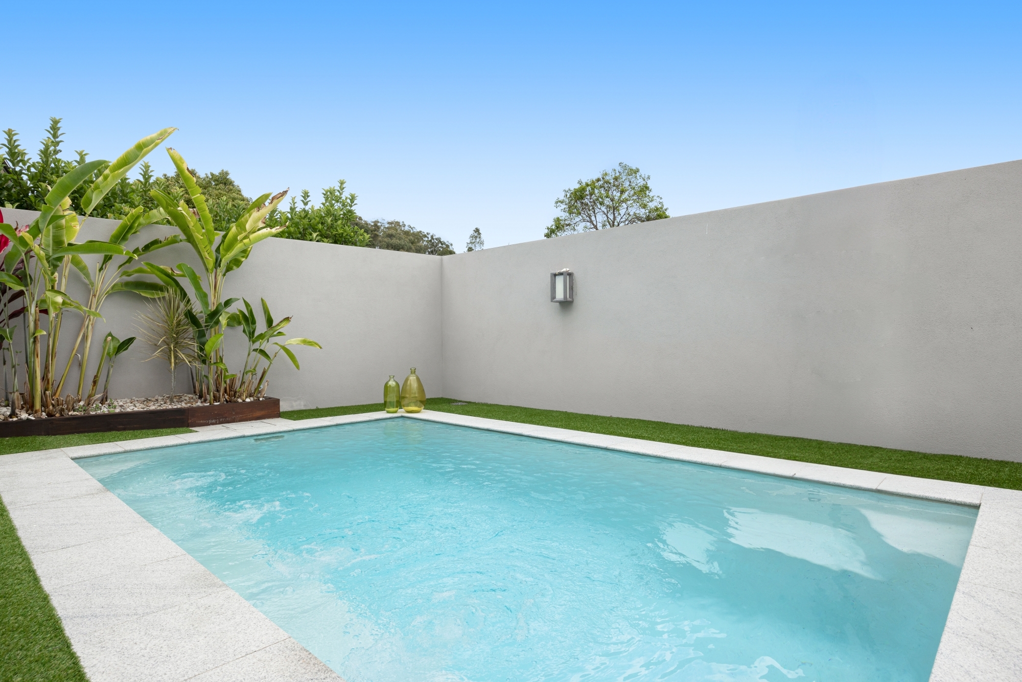 • Private swimming pool positioned within a low-maintenance backyard