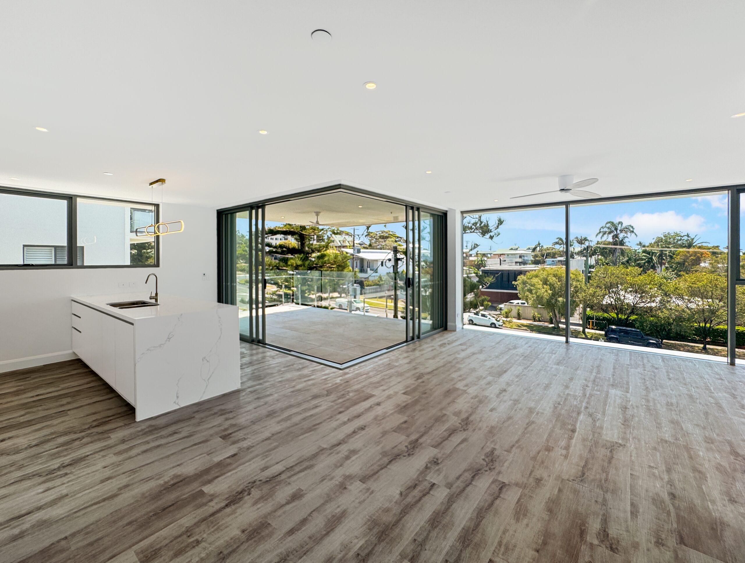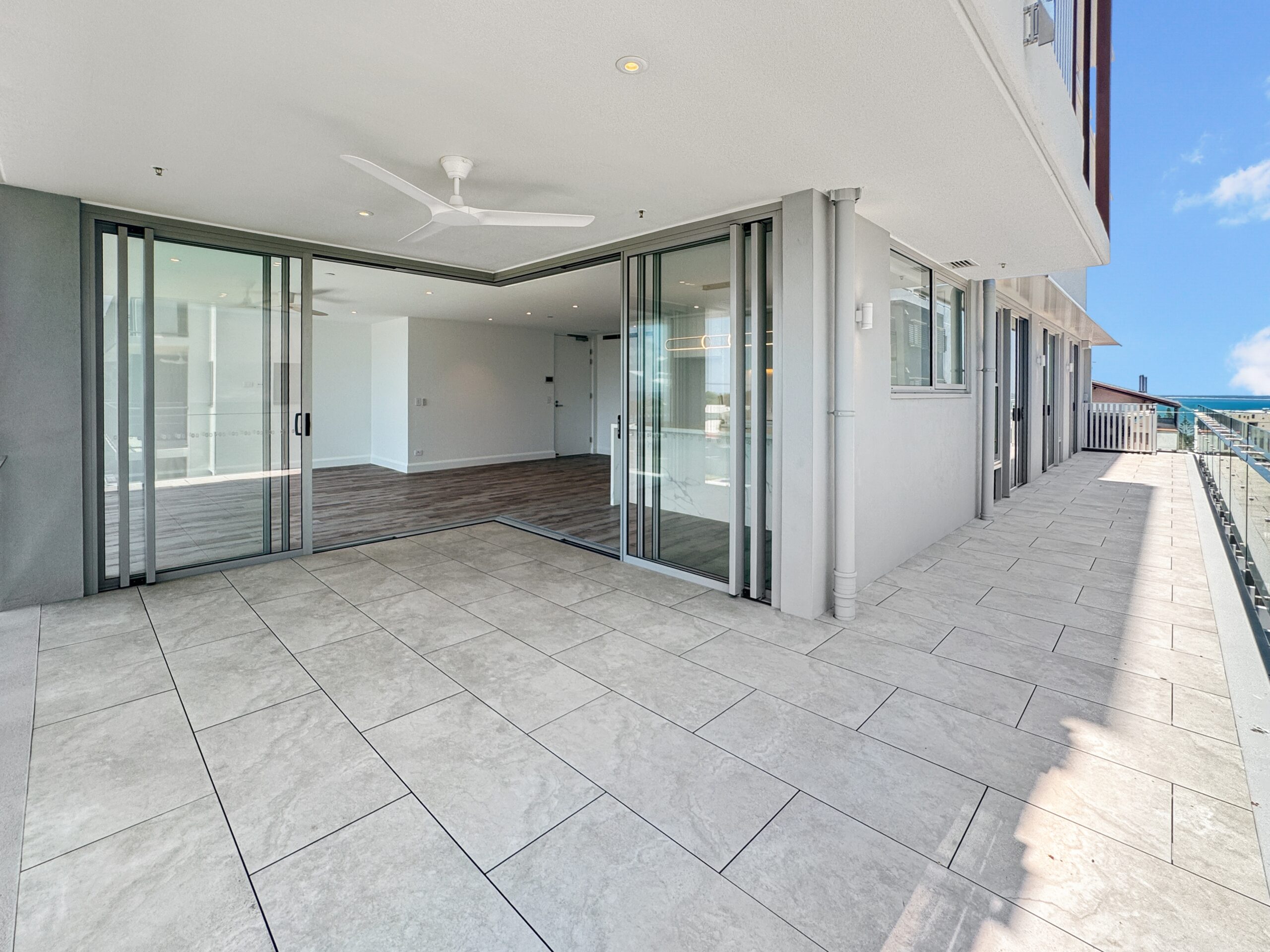Inside, the expansive 170sqm open-plan design welcomes you with floor-to-ceiling glass that floods the space with natural light and invites refreshing sea breezes throughout. The generous wraparound balcony extends your living area, offering the ideal setting for morning coffee, relaxed dining, or evening unwinding as you take in the breathtaking north-facing ocean views — plus sweeping southern views from the side balcony.