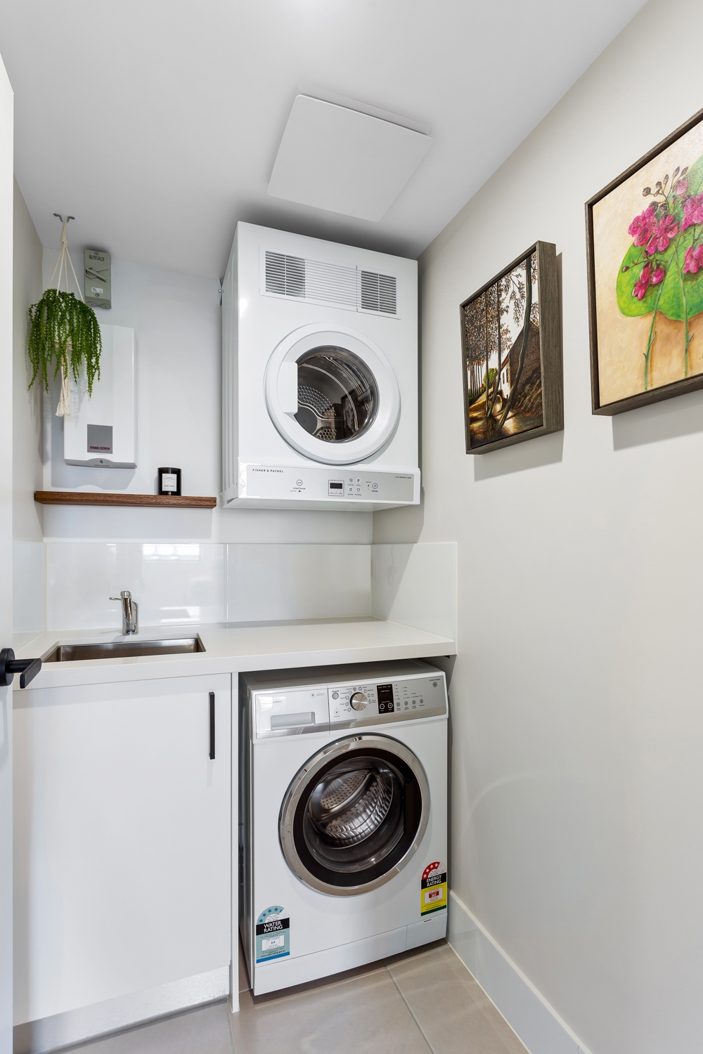 • Separate custom-made laundry with stone benchtop, wall mounted front load tumble dryer and washing machine provided