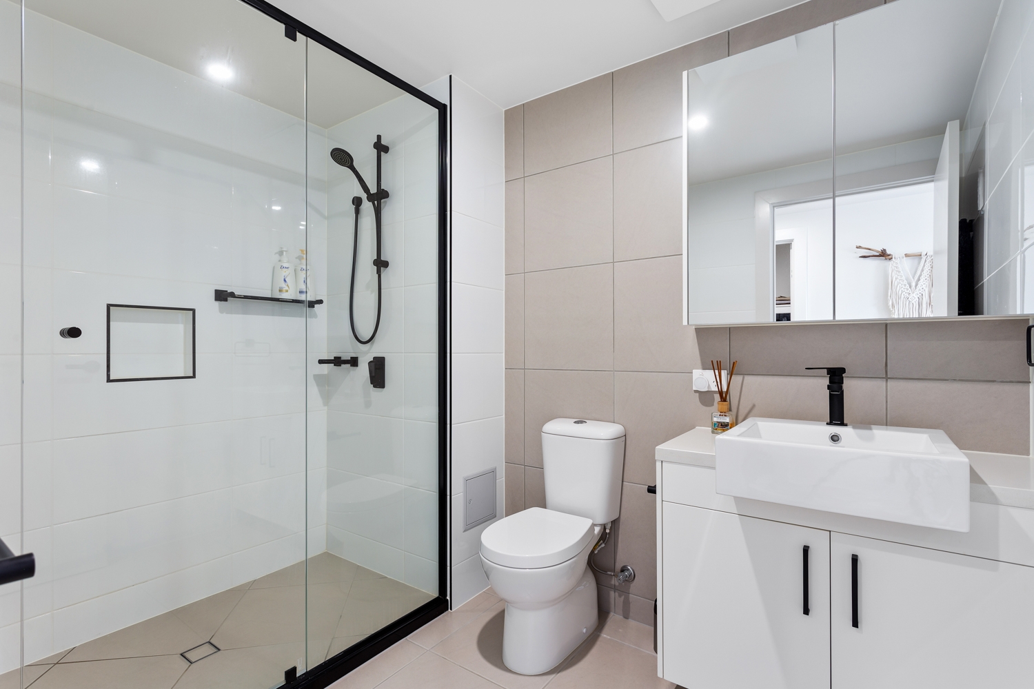 • Main bathroom and ensuite featuring floor to ceiling tiles plus vanities with stone benchtops