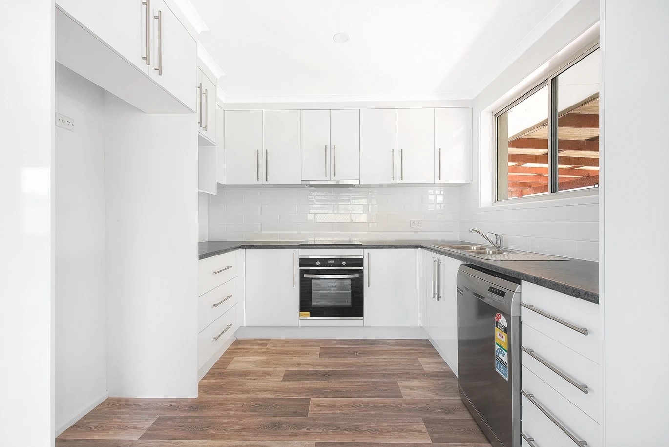 • Beautifully renovated kitchen with white tiled splashbacks, dishwasher, great storage, and bench space
