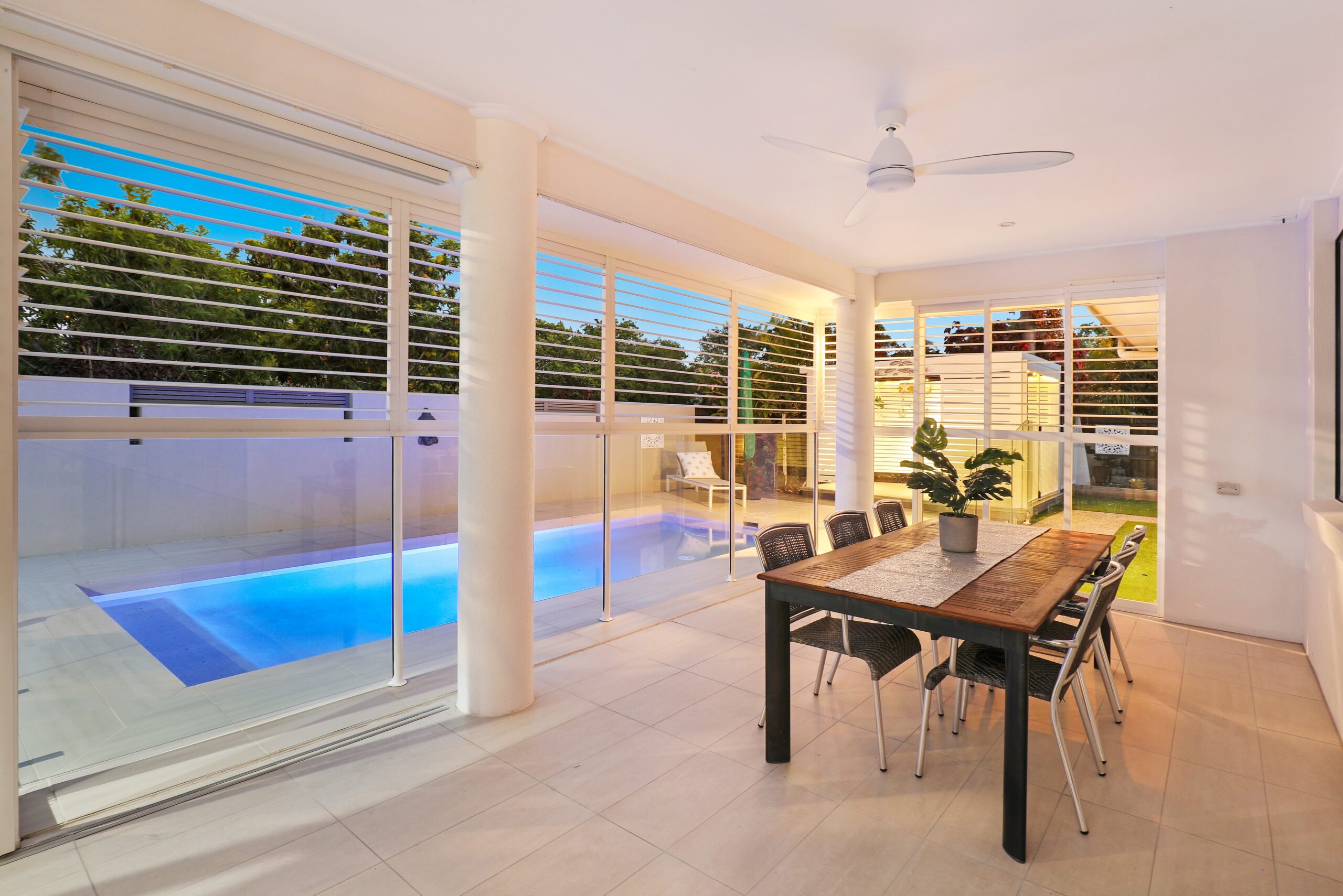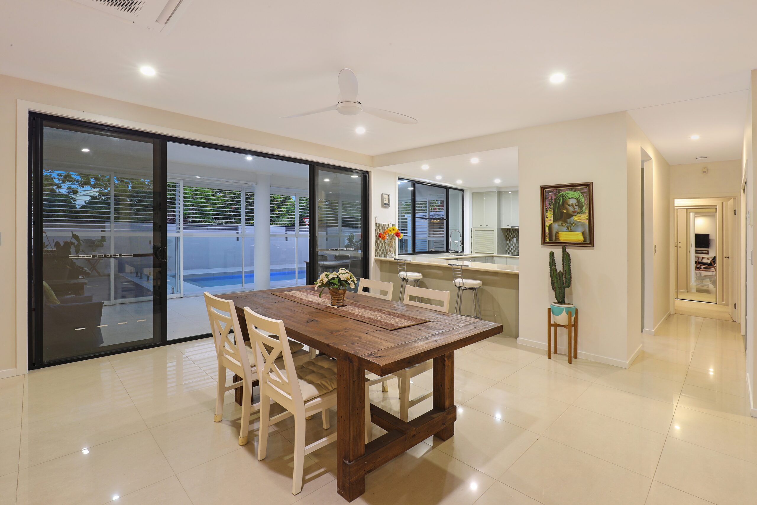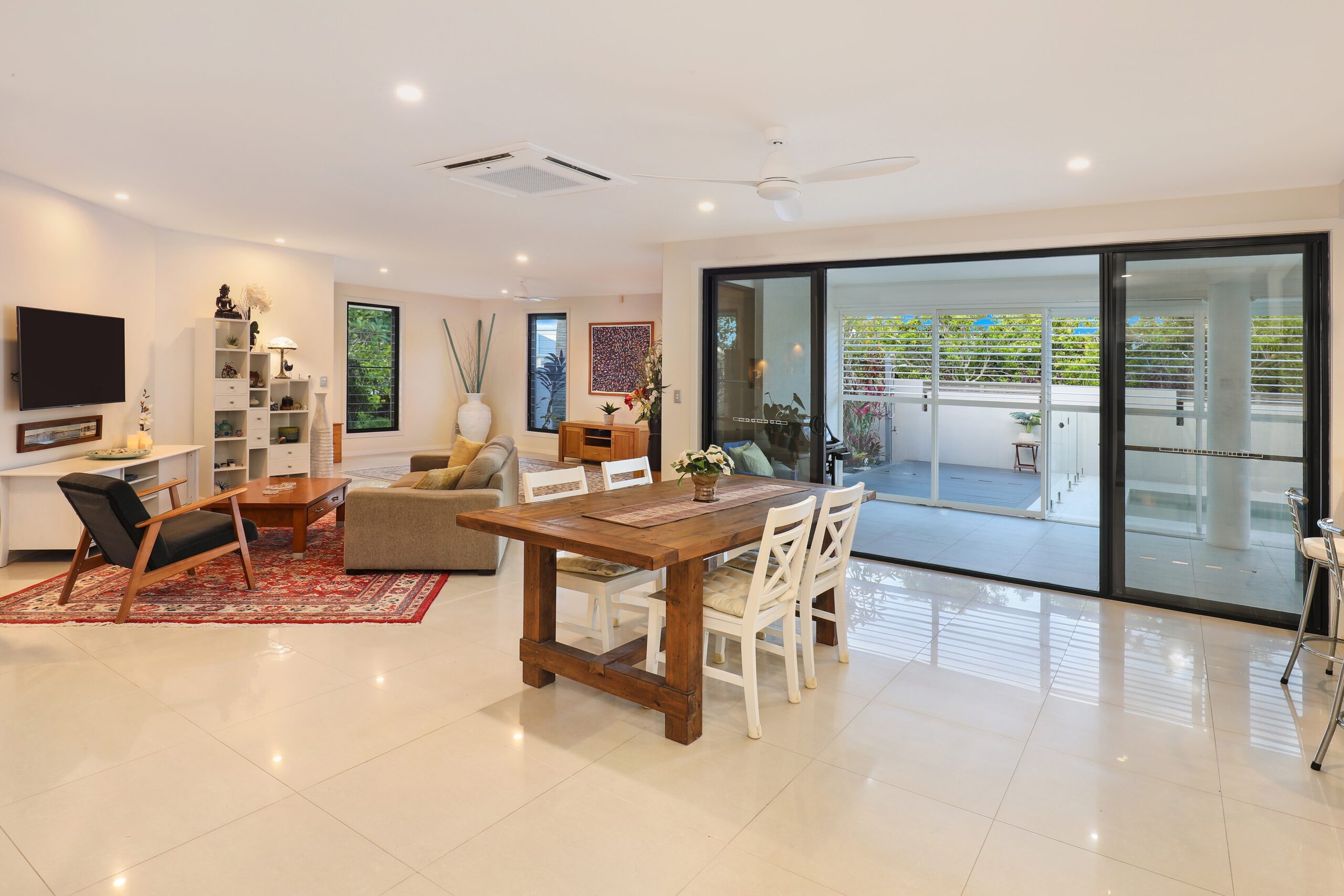 • Open plan living, dining and kitchen plus large outside under-roof entertaining area, overlooking pool.