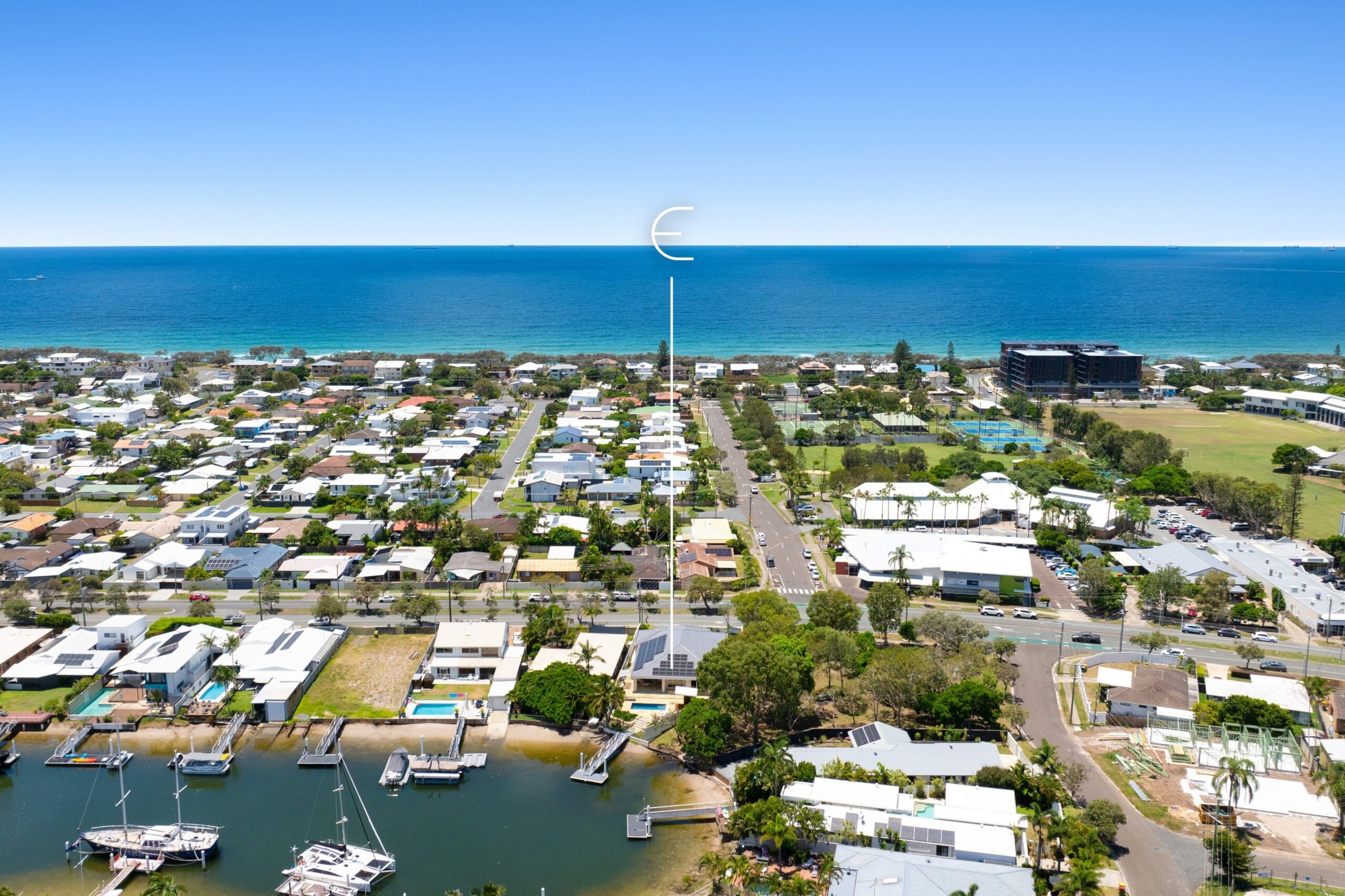 Positioned on one of the Sunshine Coast’s most exclusive waterfront addresses, this near-new 360m² single-level residence sits proudly on an 850m² block with wide street frontage and the rare advantage of adjoining a leafy park. Designed and built without compromise, the home blends contemporary design with timeless craftsmanship, offering a lifestyle of space, privacy, and sophistication.