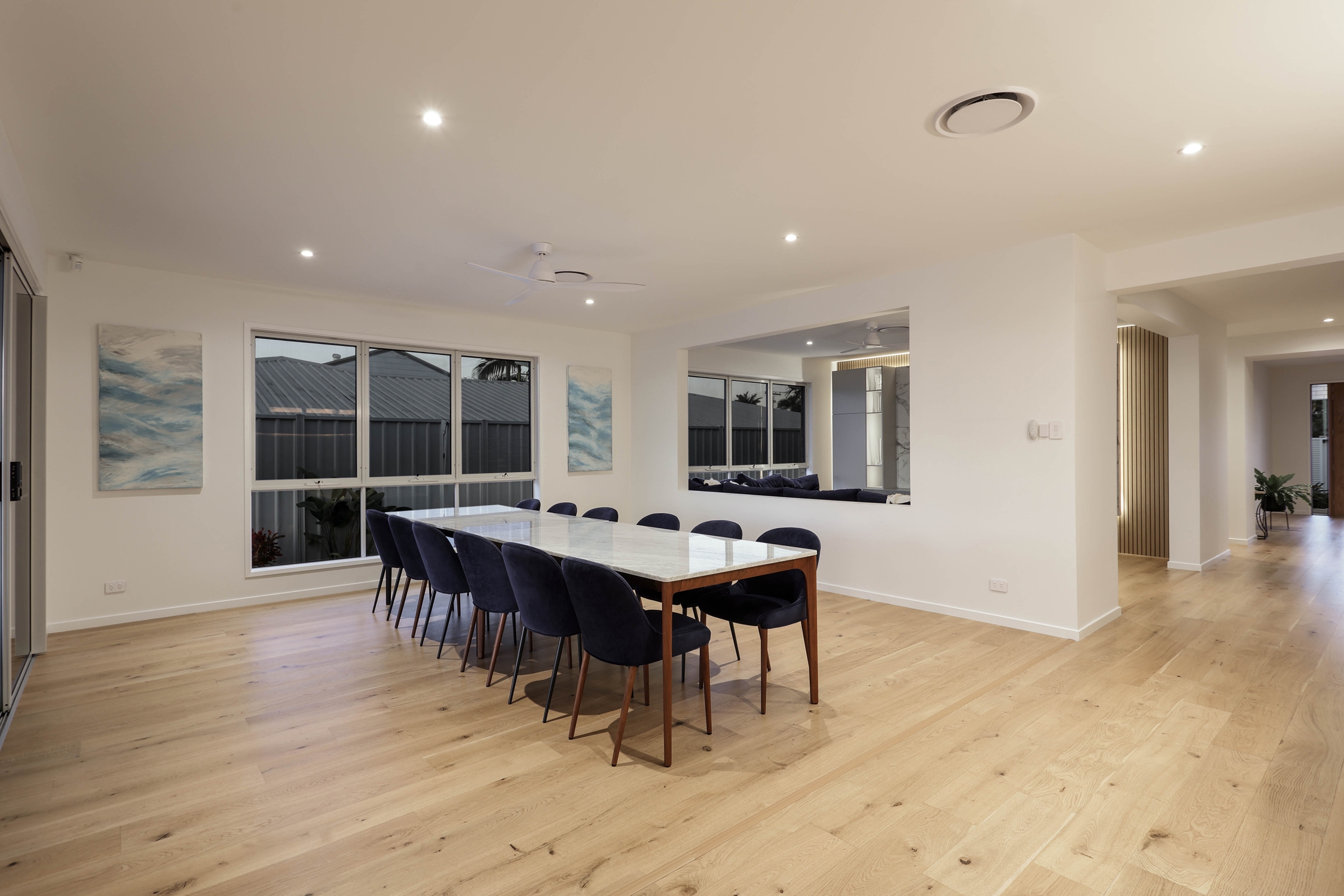 Sustainability and technology are seamlessly integrated, with a 20kW solar system, 11.6kW battery storage, three-phase power, and a 7kW EV charger within the epoxy-coated double garage. Comfort is ensured year-round with Fujitsu smart ducted air-conditioning, acoustically insulated walls, and tinted double-glazed windows and doors. Security has also been prioritised, with a Bosch nine-camera system, intercom, and dual electric driveway gates completing the offering.