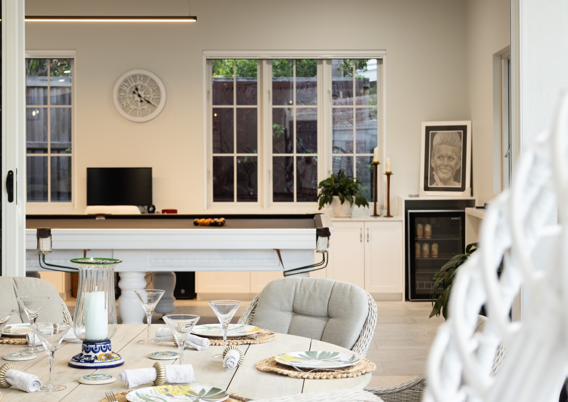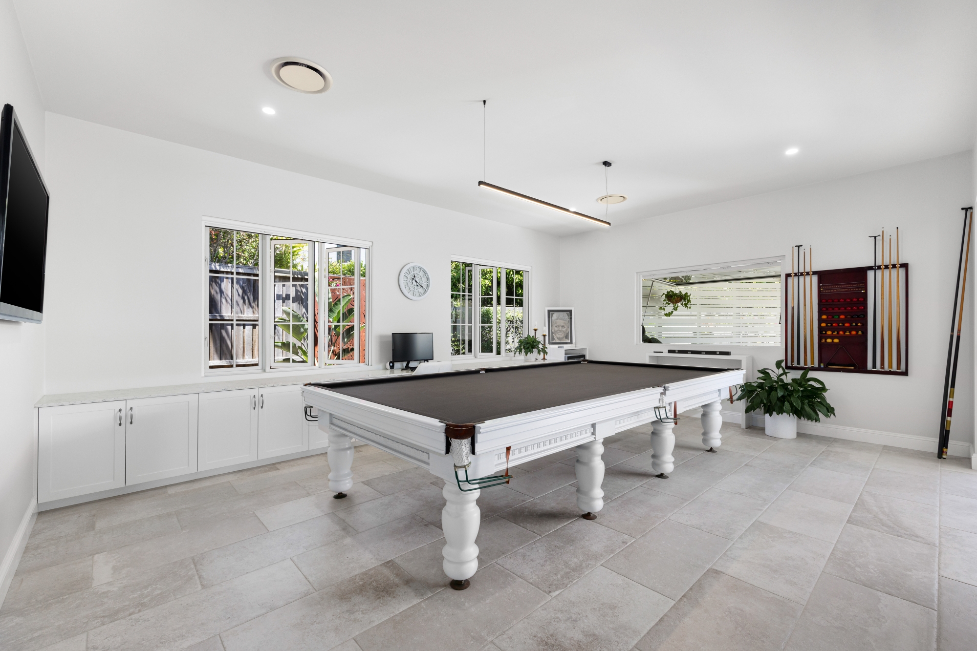 – Multiple indoor living areas including lounge room, formal sitting, dining, and snooker room