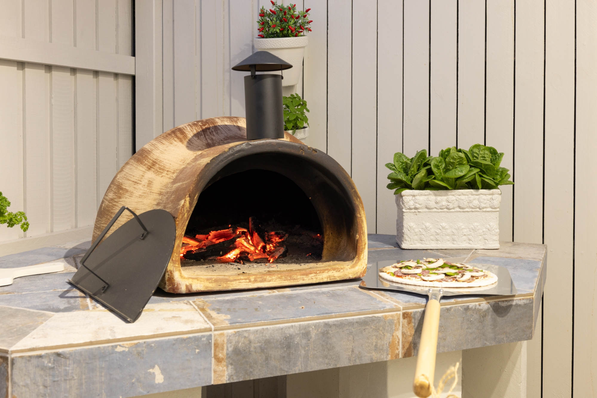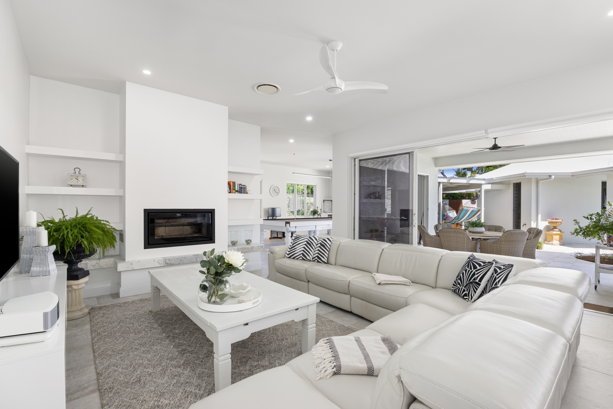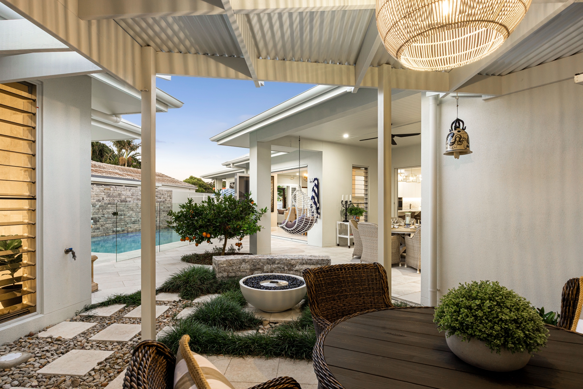 – Two outdoor entertaining zones with fire area, pizza oven, and pool deck