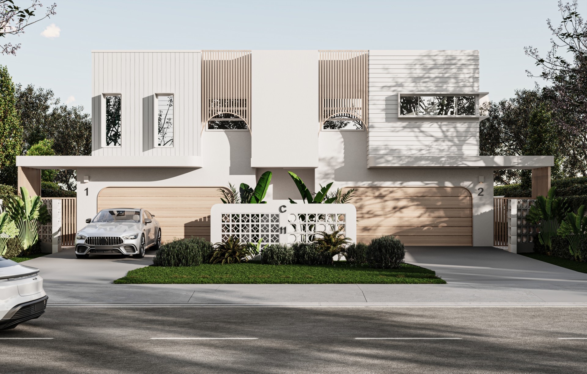 Number 2 of 11 Coolahra Street is a high-end coastal duplex currently under construction, offering a low-maintenance layout designed for relaxed beachside living just off Oceanic Drive in Warana.