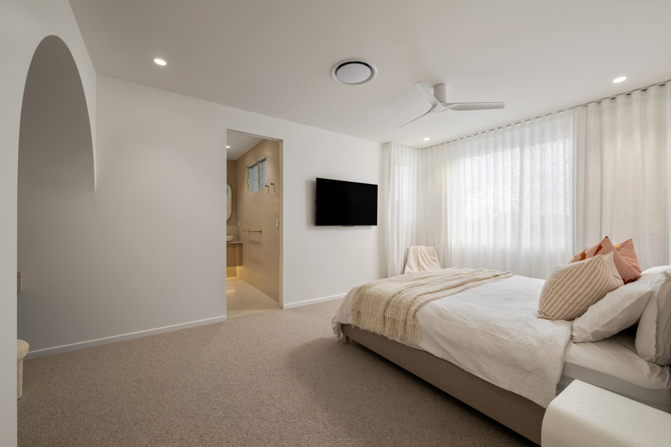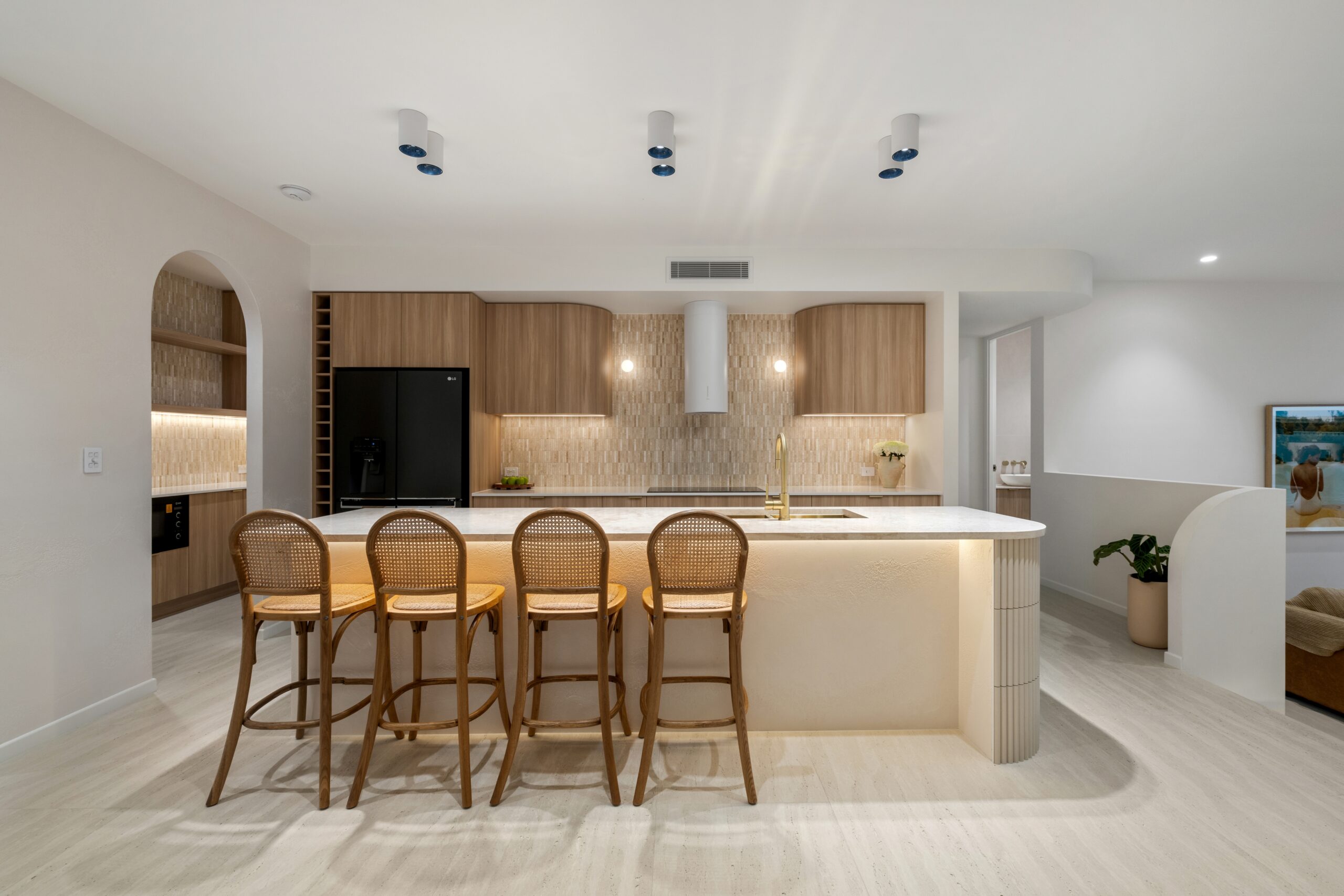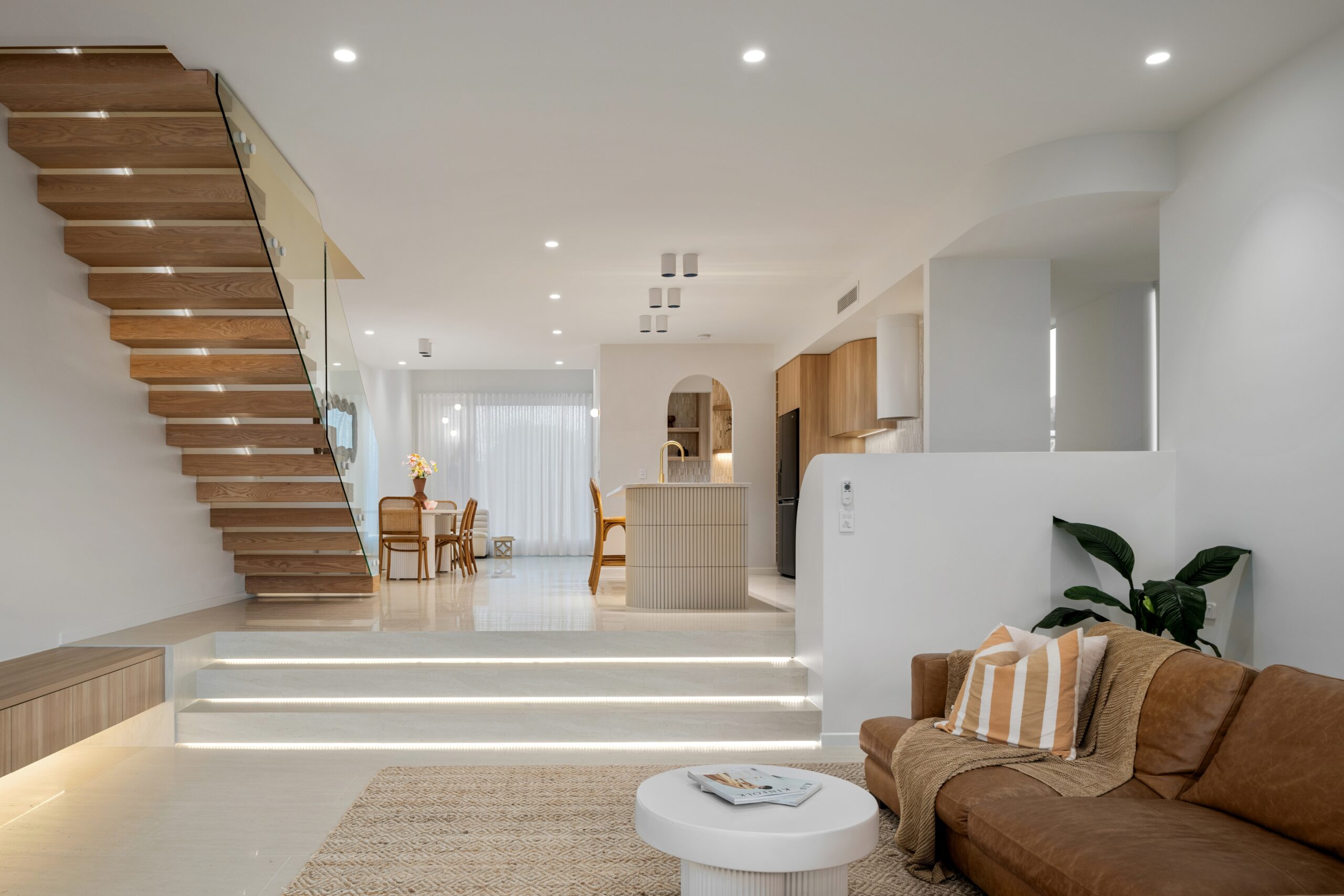 Designed for buyers who want quality, privacy and convenience without the upkeep of a larger holding, the home combines refined interiors with practical liveability. High ceilings, curated natural materials, stone finishes and warm architectural detail create a polished, design-led feel throughout.