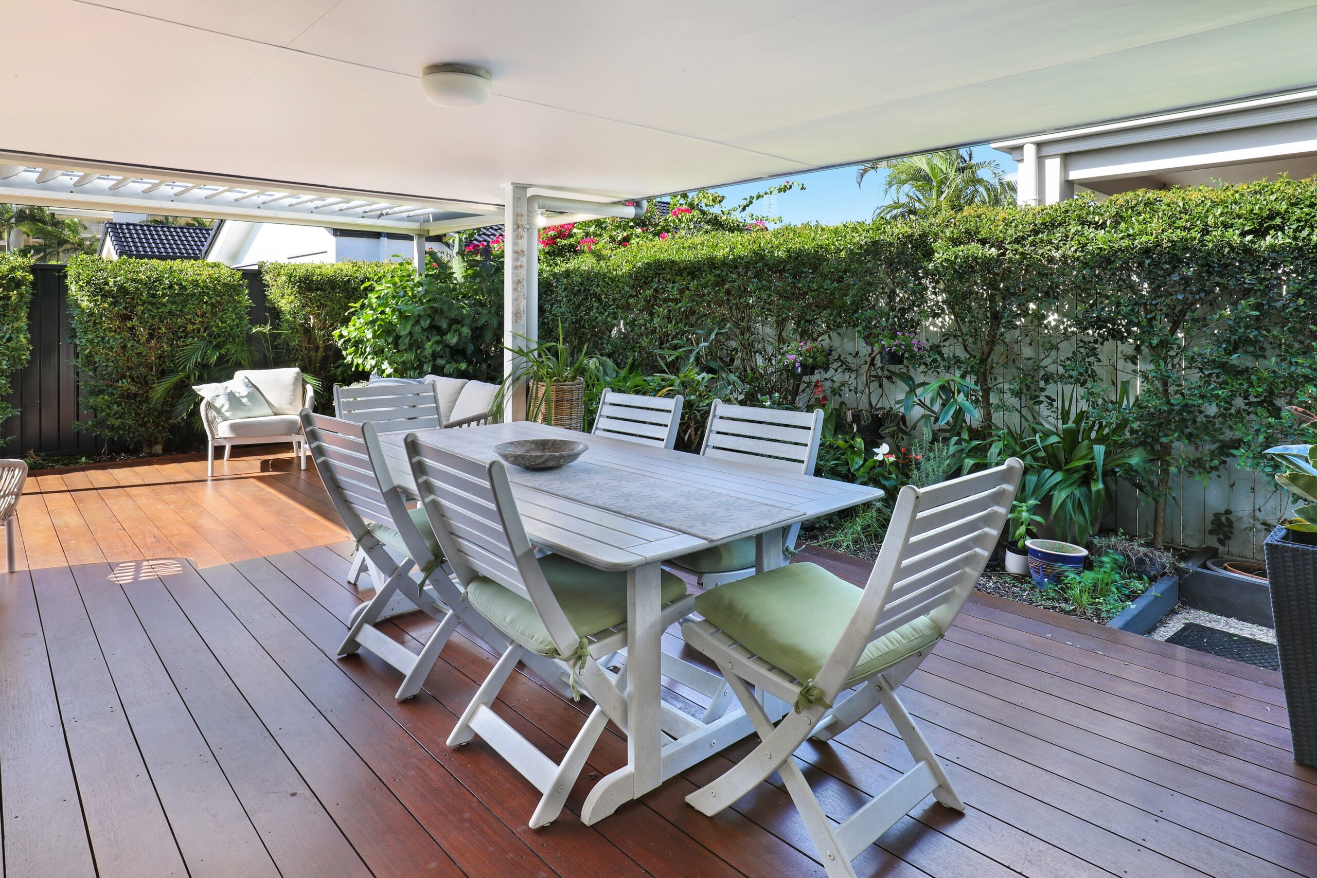 – Under-roof outside entertaining area with vast timber decking