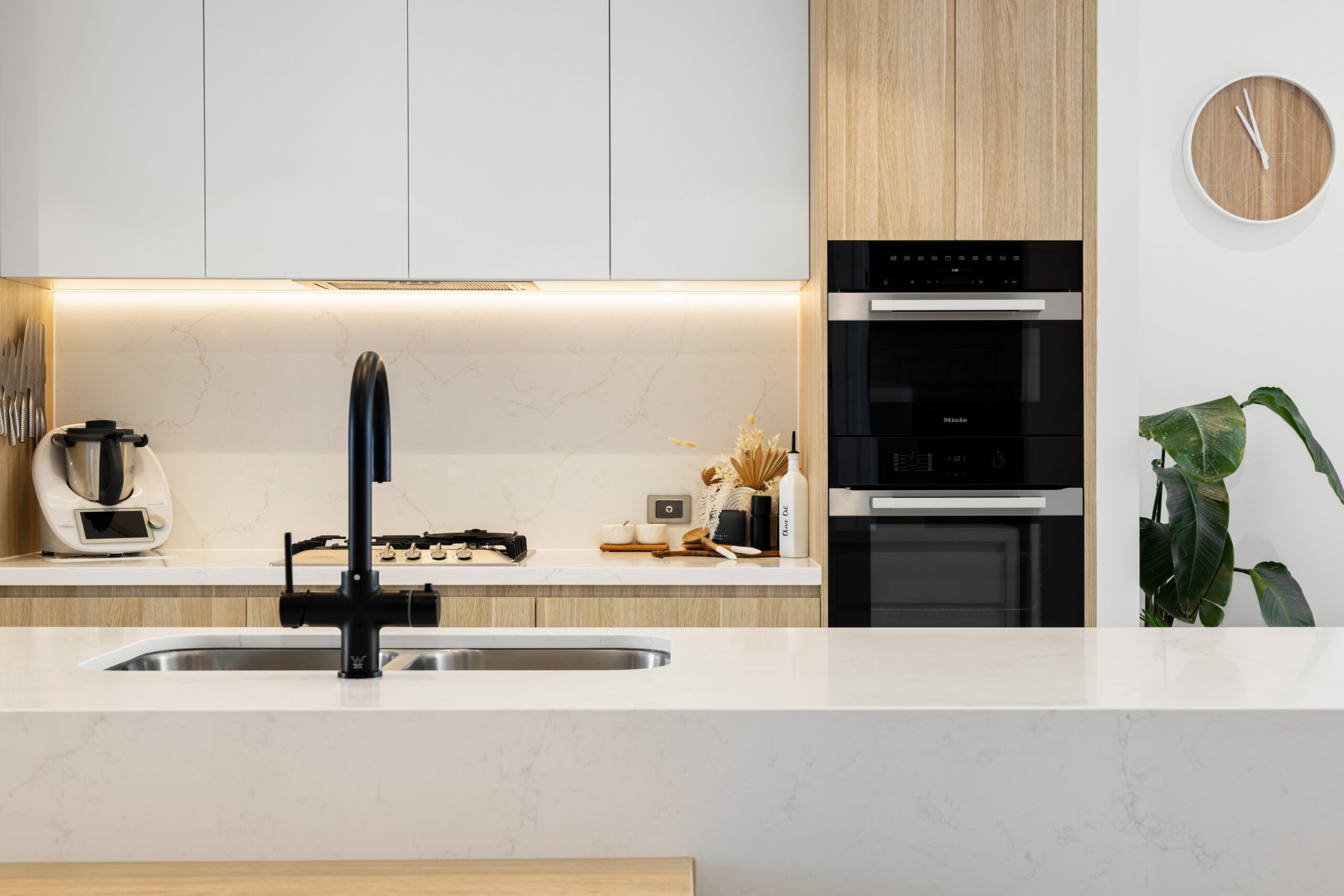 – Designer kitchen with marble benchtops, high-end fittings, and walk-in pantry
