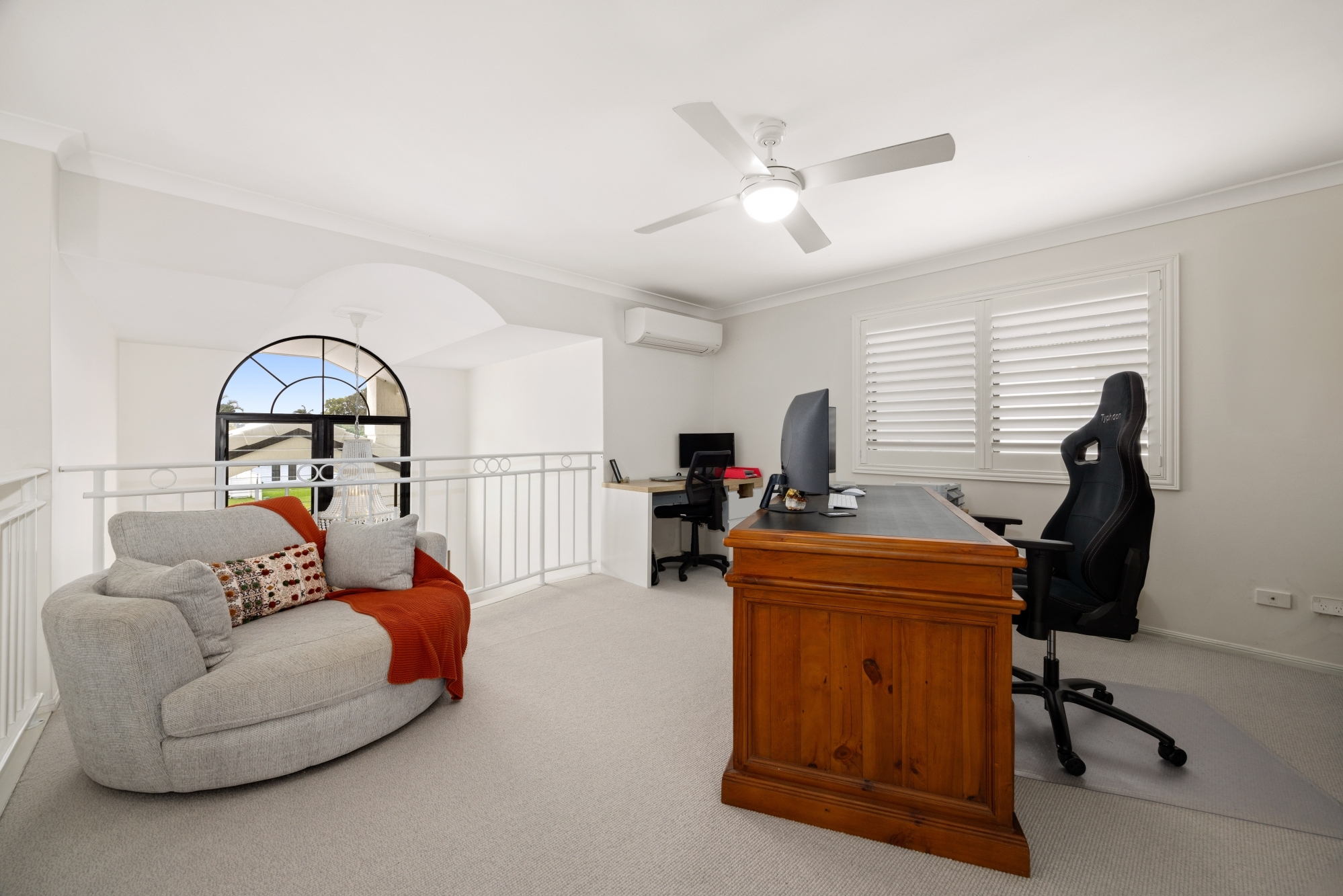 Designed with both luxury and liveability in mind, the home showcases an expansive master suite complete with a private balcony, spa bath, and walk-in robe. Plantation shutters, air conditioning, and ceiling fans enhance comfort throughout every season.