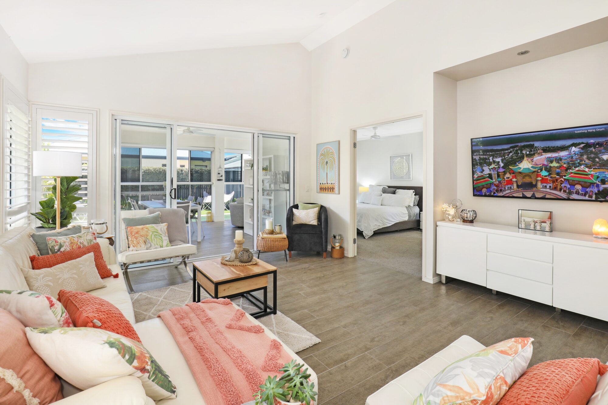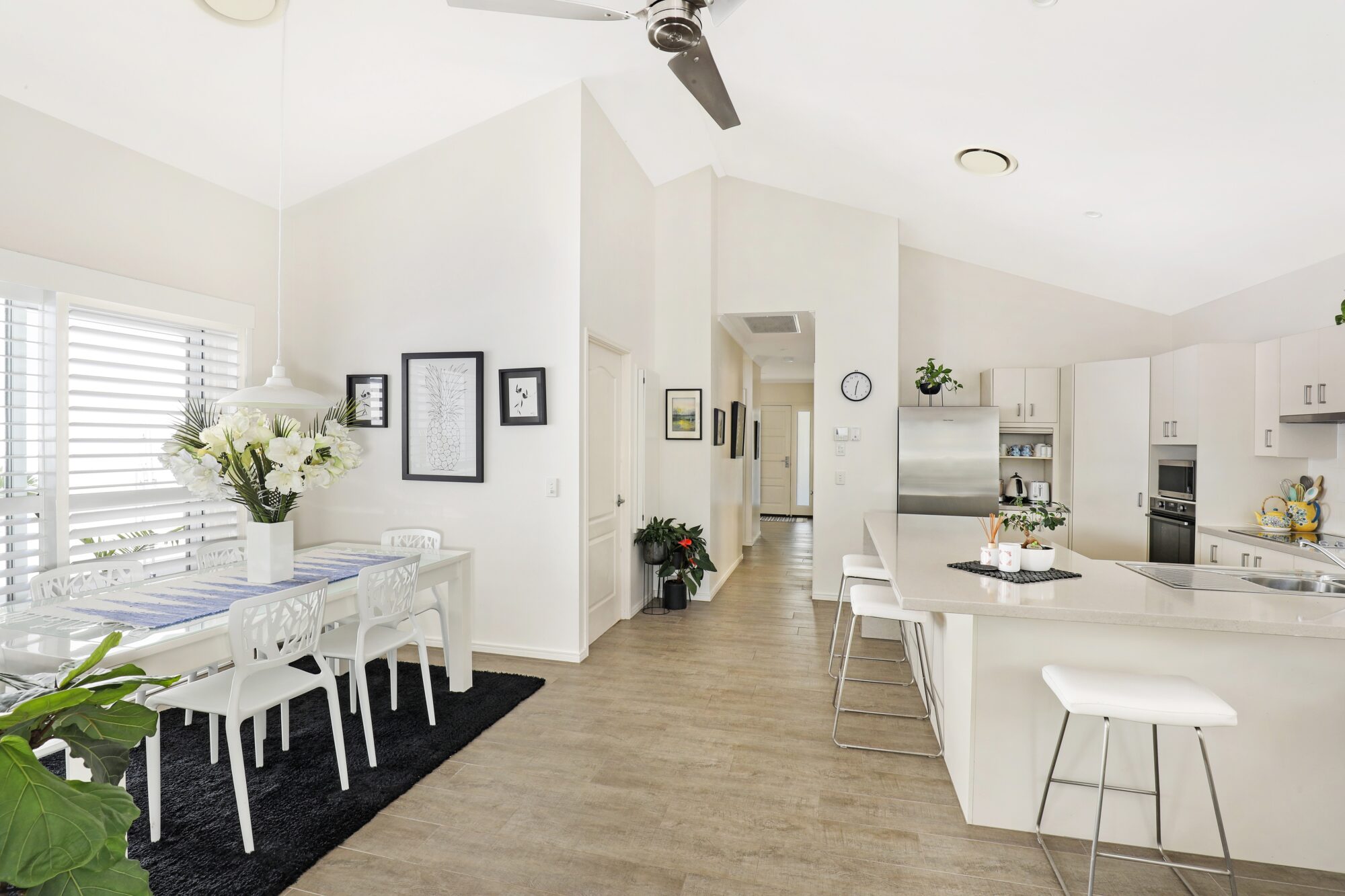 Complete with three bedrooms, two bathrooms, a large living room with vaulted ceilings plus a separate dining and entertaining area overlooking the pool.