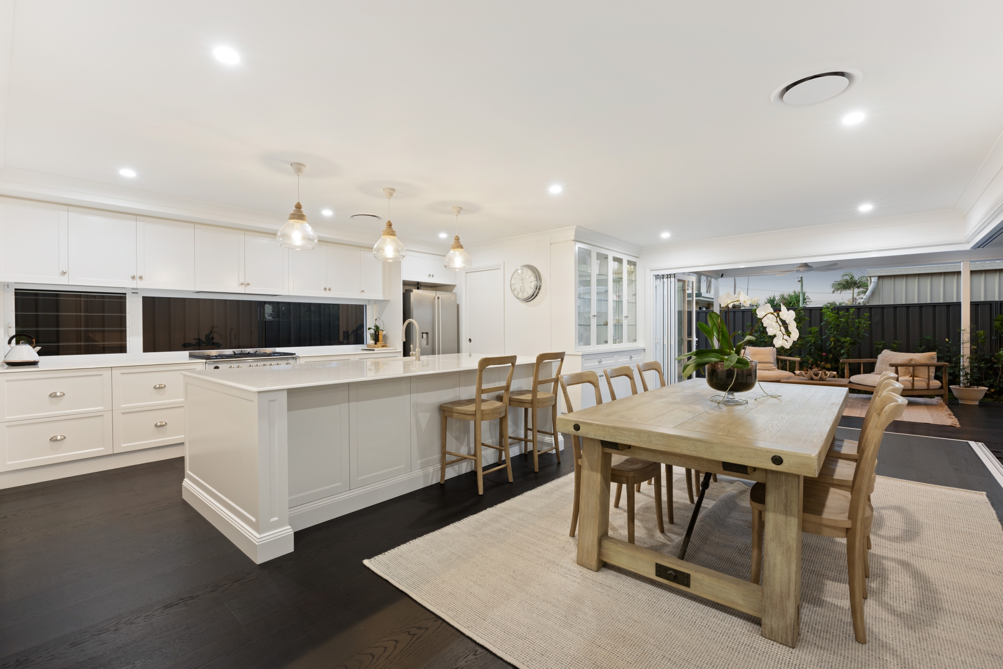 Step inside to discover expansive open-plan living and dining zones that connect seamlessly with the outdoor entertaining area. The kitchen anchors the home, fitted with premium appliances, quality fixtures and generous storage, creating the ideal setting for family gatherings or dinner parties. Outside, the sparkling in-ground pool and landscaped surrounds set the scene for relaxed afternoons in the sun or evenings under the coastal breeze.