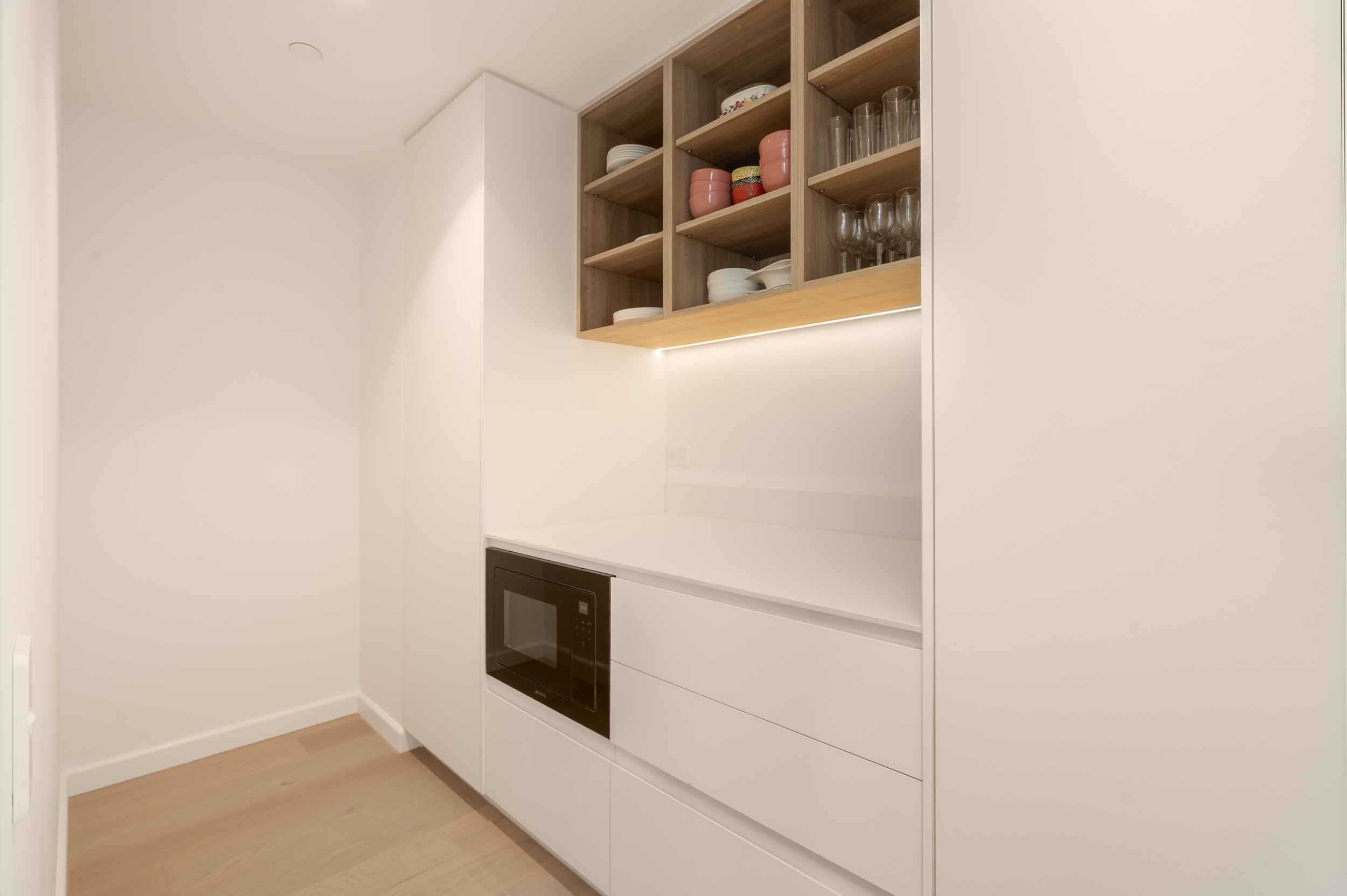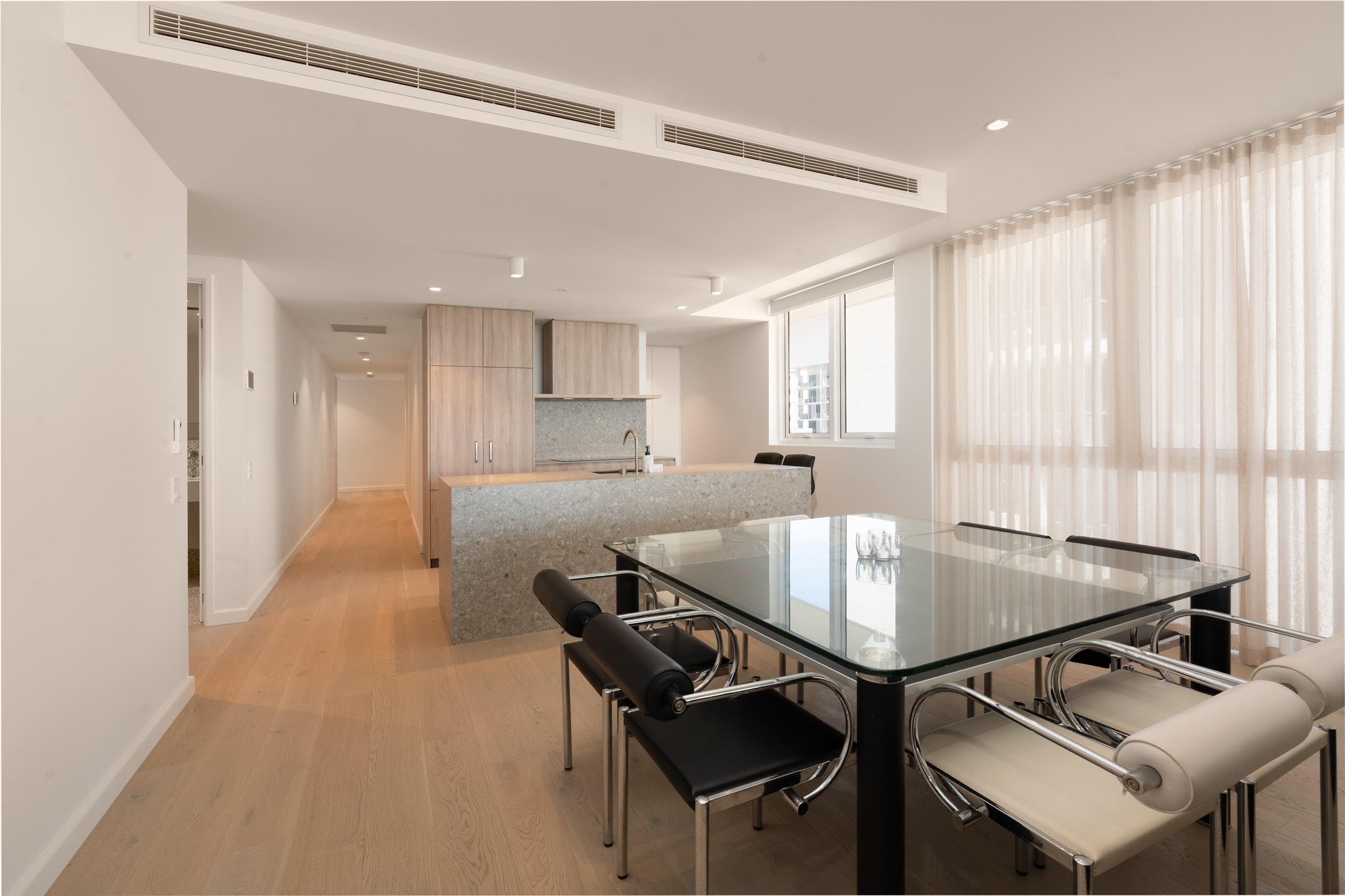 The kitchen is sleek and highly functional, appointed with quality appliances, an integrated fridge, integrated dishwasher and ample storage, and is further enhanced by a separate butler’s pantry, providing additional preparation space and storage. Everyday comfort is assured with ducted air-conditioning, a dedicated laundry fitted with a washing machine and dryer, and excellent internal storage. Secure basement parking for two vehicles, intercom access, lift access and secure building entry complete the offering.