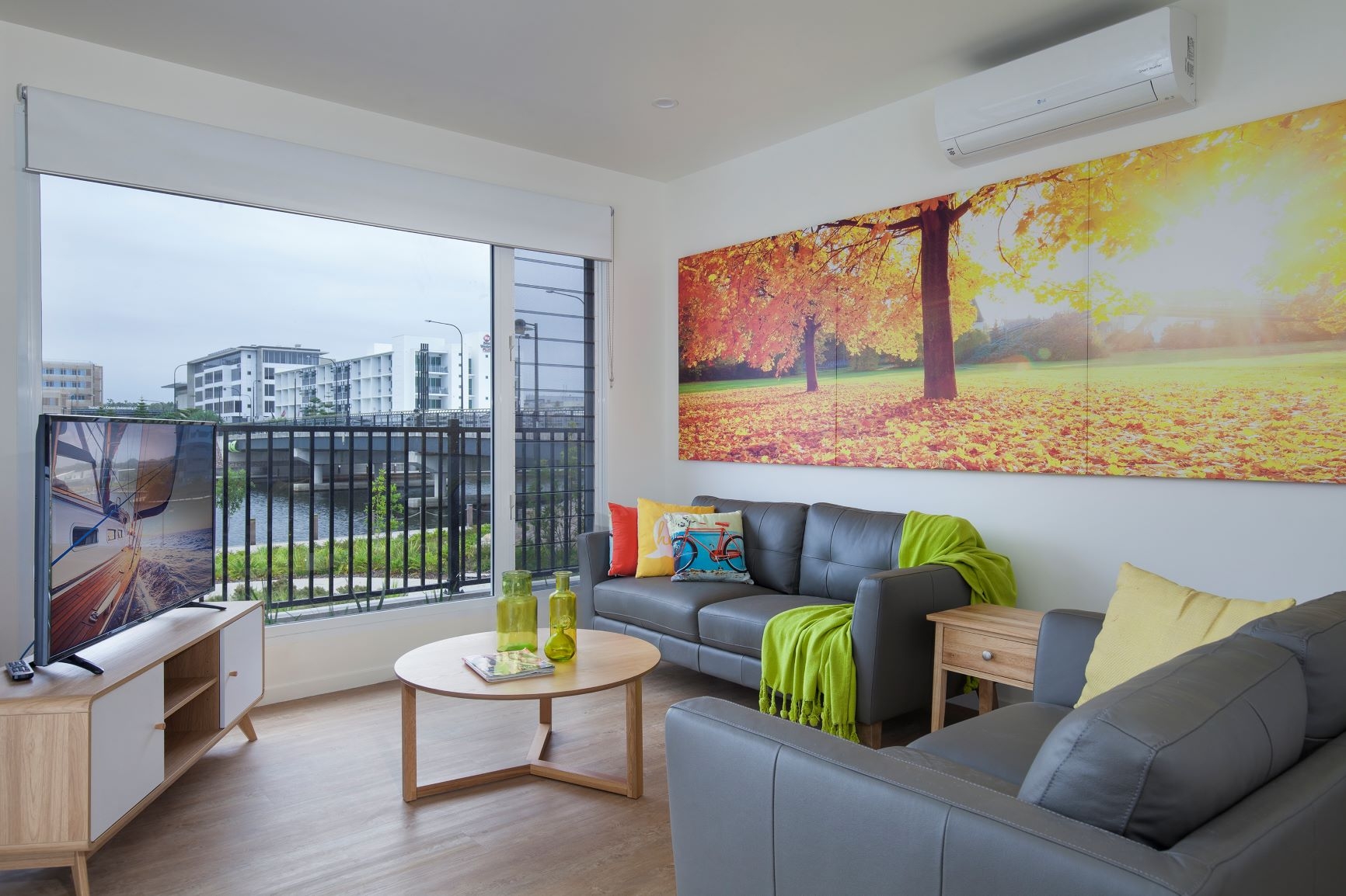 Relax on the balcony, soaking in the sunshine, and enjoy the 180-degree panoramic views of the surrounding lake and parklands. Watch the kayakers sail by, and the fish jump from the lake.